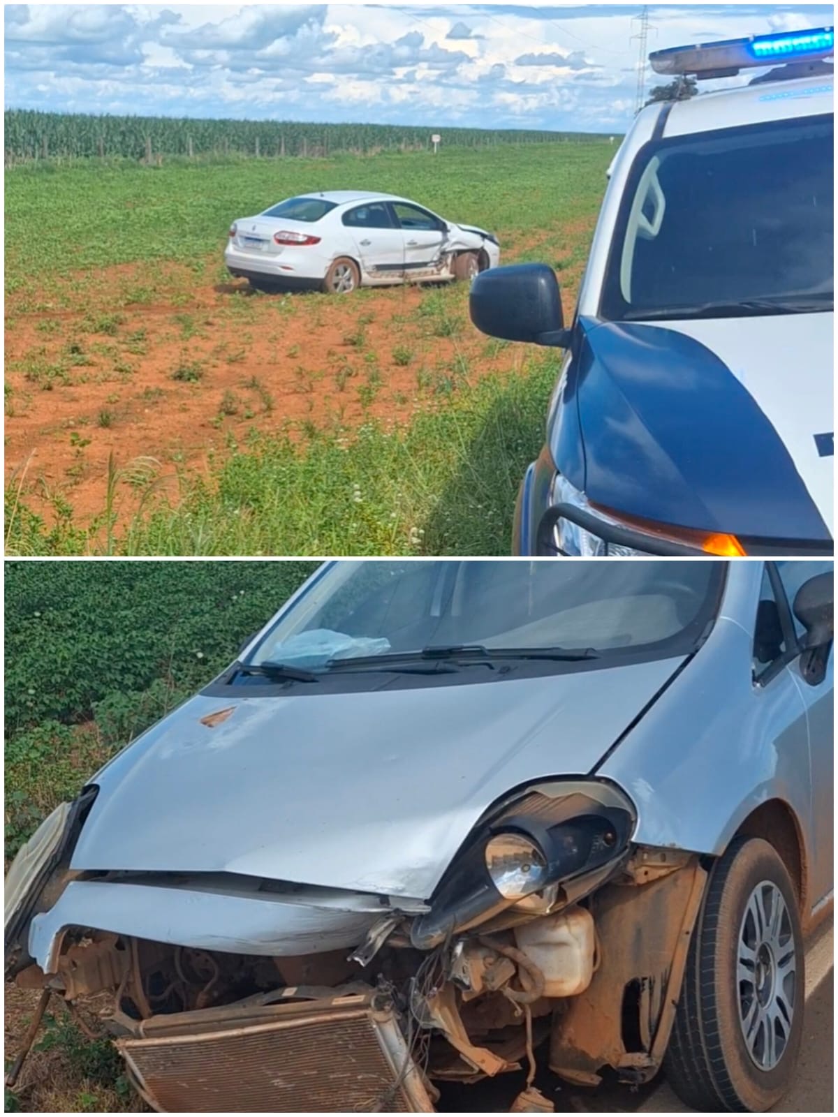 Ao se aproximar, o condutor do Fiat Punto iniciou uma manobra de retorno repentina para seguir no sentido contrário. A ação resultou em uma batida, na qual a parte frontal do Fiat Punto atingiu a lateral direita do Renault Fluence, forçando o veículo da vítima a sair da pista de rolamento.