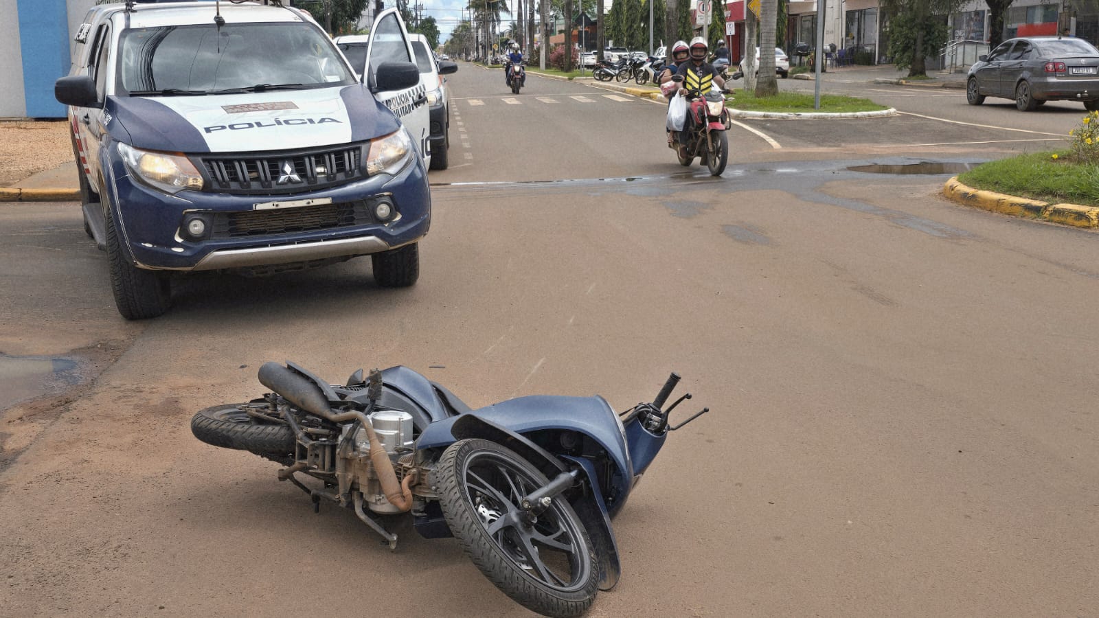 Motociclista fica ferida após colisão entre moto e carro em cruzamento de Campo Novo do Parecis
